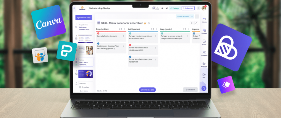 | Beekast | Collaborative presentations | – Integrations with Zoom and Livestorm – Interactive activities Projection screen Inspiration templates – Q&A – Whiteboard | Free version; paid plans start at €39 |
